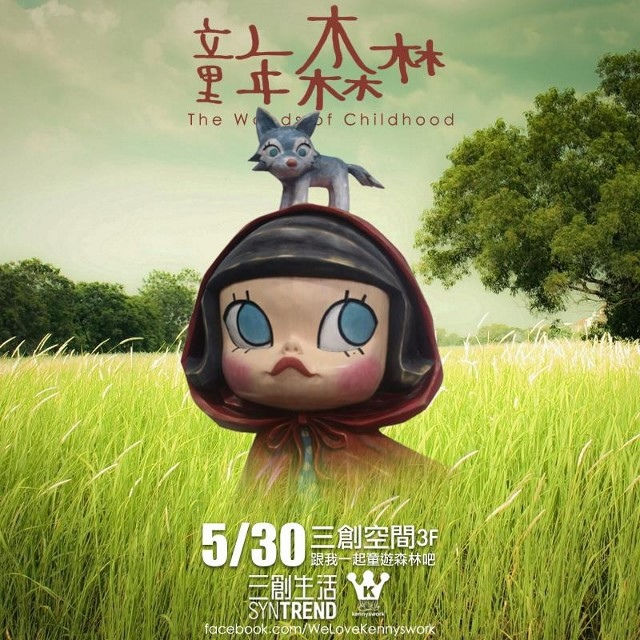 台北三創生活園區舉辦的《童年森林》特展,展出49幅創作及151個大小公仔以及九年所以作品回顧。王信明特別為特展設計Molly動畫配上專屬音樂, ,並搭建童話「小紅帽與大灰狼」故事情節中的小木屋。